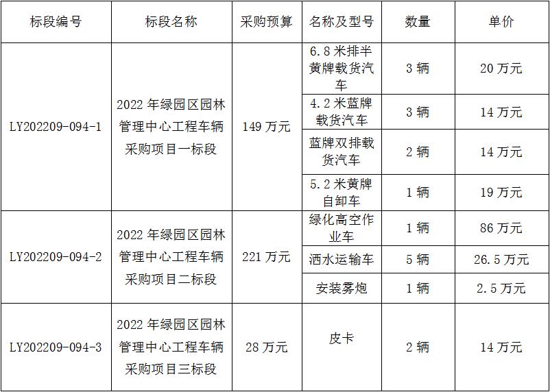 1.项目名称:2022年绿园区园林管理中心工程车辆采购项目。