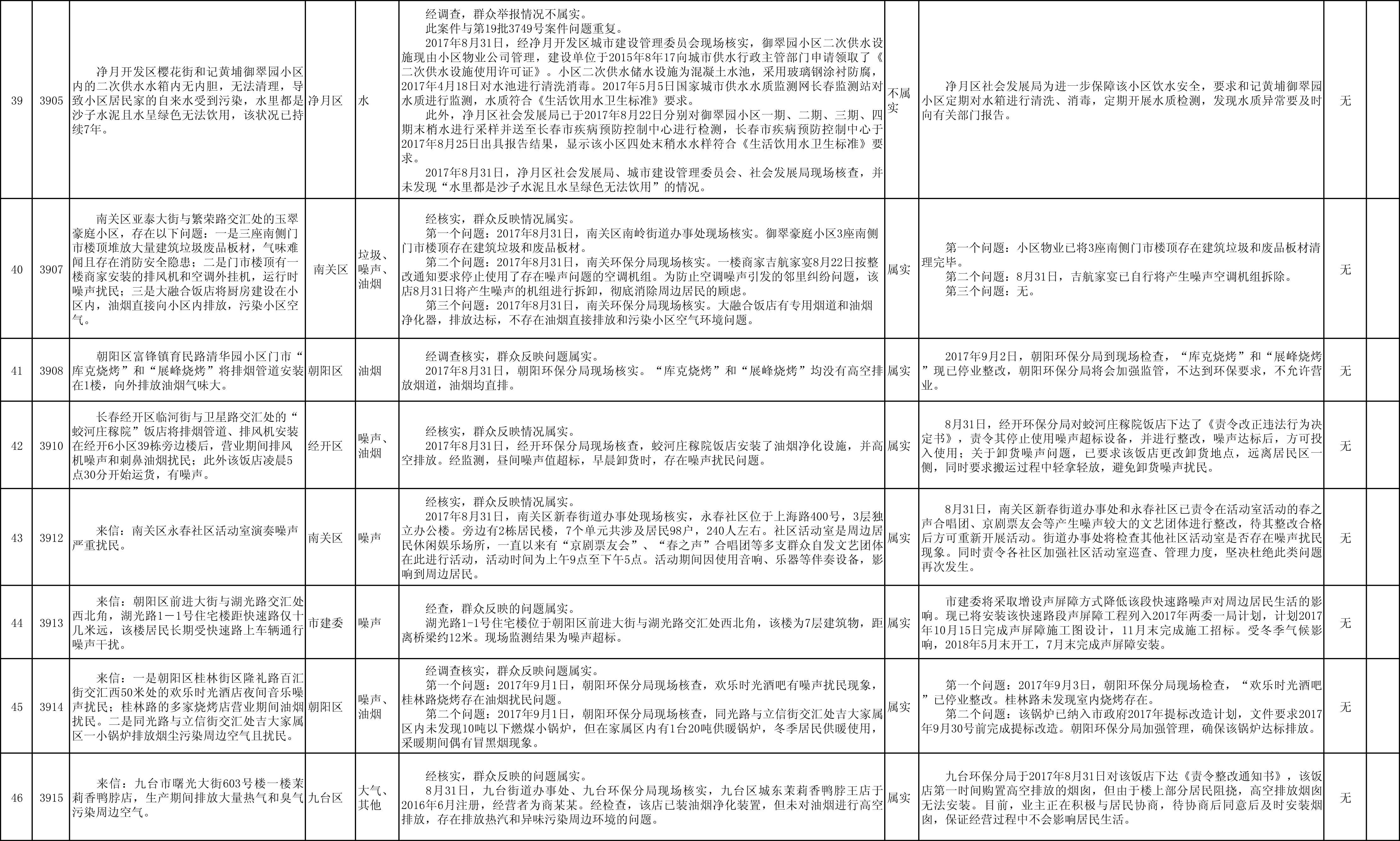 长春市群众信访举报转办和边督边改公开情况一览表(第20批 2017年9月9日)