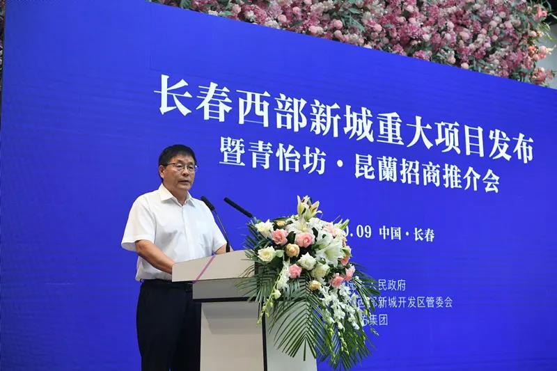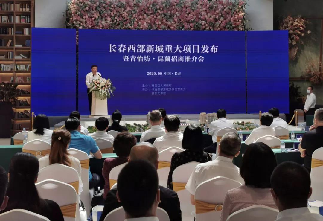 9月2日,长春西部新城重大项目发布暨青怡坊·昆蘭招商推介会在昆蘭艺术中心举办。绿园区委副书记、区长方述华参加推介会并致辞,区委常委、常务副区长王涛主持推介会,区委常委、副区长杨万来做项目推介,长春市发改委副主任刘佰军、市规自局副局长卢威、市商务局副局长汤清、市合作交流办副主任姜波、市文旅局副局长张占铎、市卫健委副主任温贵君,绿园区委常委、宣传部部长高丽丽,以及地产开发、商业开发等50余户知名企业代表参加此次发布会。