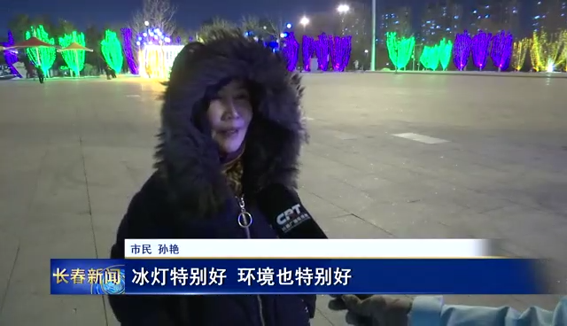 市民 孙艳:冰灯特别好,环境也特别好,为附近的居民带来了欢乐的环境,晚上到这遛弯儿、锻炼,心情特别好。