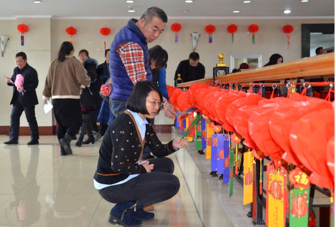 灯谜涵盖了历史知识、天文地理、成语谜、人物迷等类型,有易有难,趣味十足,活动现场十分热闹。