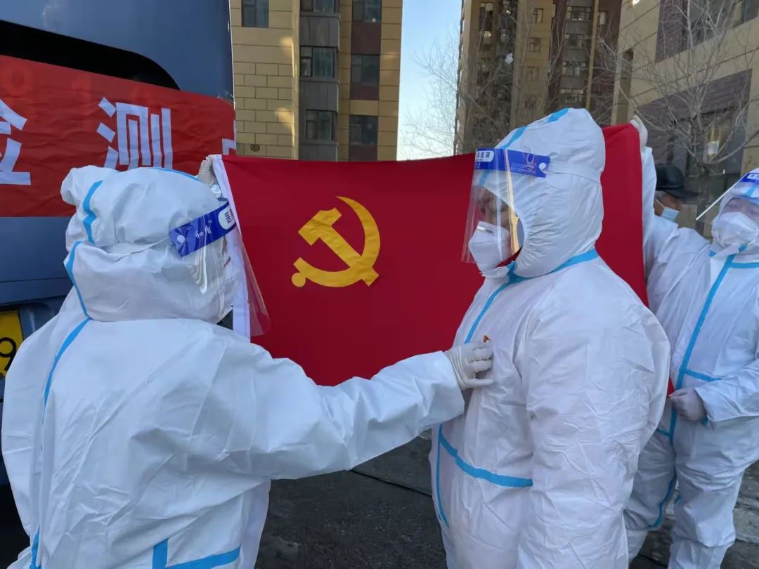3月21日下午,在绿园区部分封控小区、核酸检测采样点等疫情防控工作现场,举行了一场场简洁而庄重的入党宣誓仪式,13名疫情防控一线人员在各自工作地点,面对鲜红的党旗庄严宣誓:“我志愿加入中国共产党,拥护党的纲领,遵守党的章程,履行党员义务……”