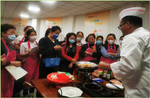 为适应社会需求,此次培训还增加了家庭营养学等课程,聘请专业老师为大家演示松鼠鱼、口水鸡、京酱肉丝等菜品的烹饪过程,传授中式烹调的基本技能。