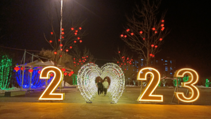 重设计,展绿园核心精神。从方案设计入手,通过“点、线、面”相结合方式,对三个广场、四条街路以及五处节点等进行节日夜景气氛营造,选用新颖、别致、多样的灯光、灯饰,布置景观灯、夜景小品装扮城区夜景,塑造多层次、立体化节日亮化效果,并根据区域特色,打造“一街一品”的亮化效果。其中景阳大路的“红火迎新春”、普阳广场的“幸福绿园”、景阳广场的“活力绿园”、巾帼大厦门前的“展翅高飞”、锦江广场的“时光隧道”等作品,集中展示了绿园区核心精神,展现了绿园人民幸福生活的美好场景。