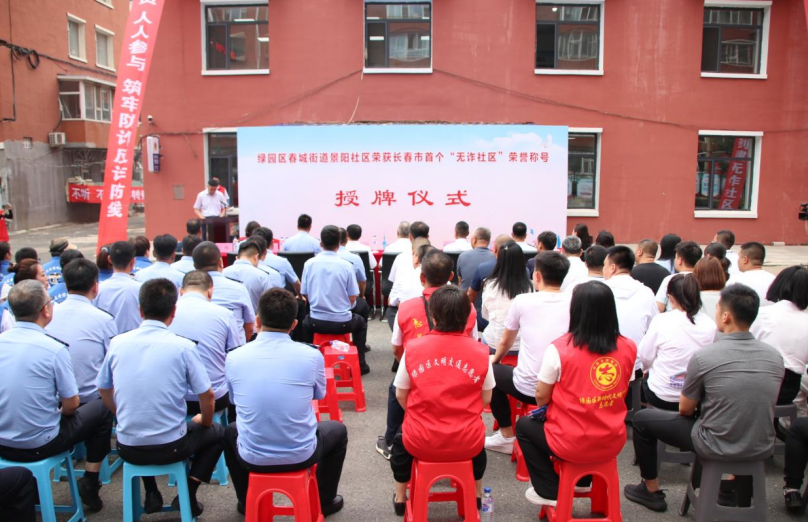 7月6日,长春市首家“无诈社区” 春城街道景阳社区揭牌,长春市打击防范电信网络诈骗联席会议召集人、刑警支队支队长常健,绿园区委常委、政法委书记李刚,绿园区副区长、公安分局局长于保全参加揭牌仪式。