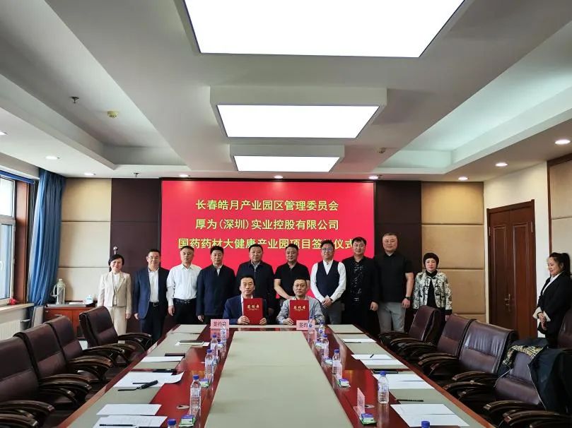 5月13日,皓月产业园区与厚为(深圳)实业控股有限公司举行国药药材大健康项目投资建设合同签约仪式。绿园区委常委、副区长李刚,皓月产业园区党工委书记、管委会主任吴兴国,厚为(深圳)实业控股有限公司董事长孟照然参加。
