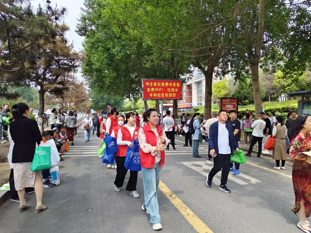 考试前一天,社区工作人员、志愿者在辖区内开展宣传,积极协调各个施工单位、各类商铺,引导他们在高考期间减少噪音污染,为考生创造一个安静、舒适的备考环境。考试第一天,丰和社区新时代文明实践站设立临时服务点和家长休息室,为考生和家长提供饮用水、纸巾、药品、雨伞等物品。丰和社区主要负责人和工作人员在市第八十七中学考点外积极引导各位家长去临时服务点休息,同时,社区志愿者还为考生提供了指路、咨询等便民服务。