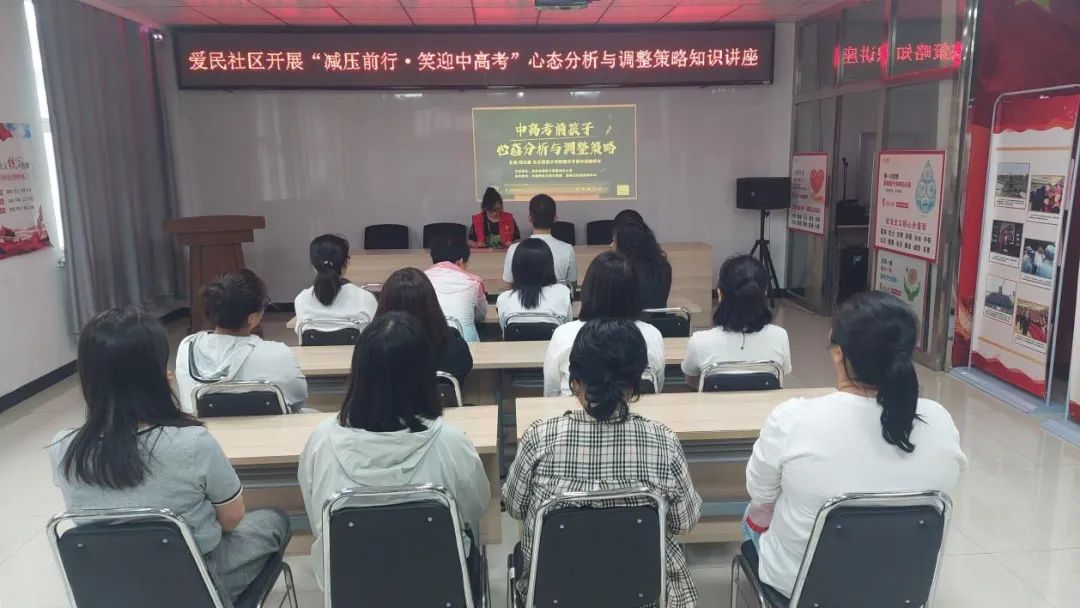 为进一步加强学生心理健康教育,引导学生和家长正确面对考试,正阳街道爱民社区新时代文明实践站组织辖区中高考家长开展“减压前行 笑迎大考”心态分析与调整策略知识讲座。