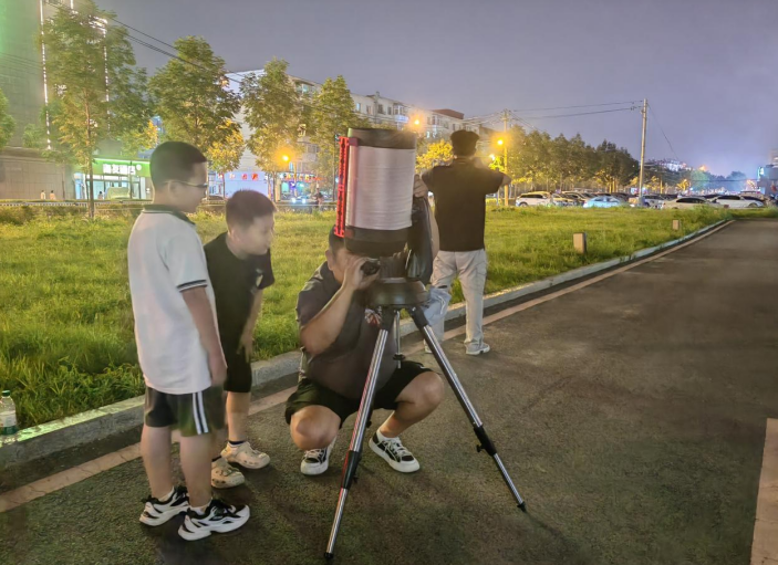 活动中,天文协会老师用诙谐幽默的语言向青少年普及月球、中国探月、人类探月的相关知识,讲解了天文望远镜的正确使用方法。随后,孩子们通过天文望远镜,清晰地观看到了月球表面。观看过程中,老师一边指导调整观看姿势,一边介绍月球每天的变化规律等相关知识,向大家揭开浩瀚宇宙的神秘面纱。