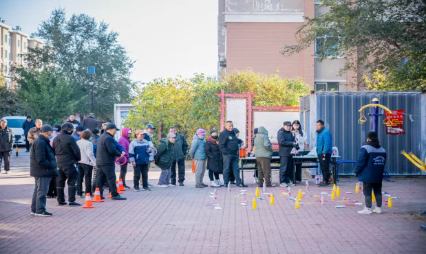 活动现场,医生为老年人解答骨质疏松、腰椎间盘突出等疾病问题,从饮食、用药等方面提出个性化建议;免费磨刀区,工作人员将钝刀、锈剪磨得锋利如新;小家电维修区,师傅们认真修复电水壶、电饭煲等家电故障;公益理发区,理发师为居民修剪出清爽造型,获连连称赞;互动游戏区同样热闹,抽奖、套圈游戏让居民热情高涨,大家争相参与抽奖,收获豆油、面粉等奖品,欢笑声不断。
