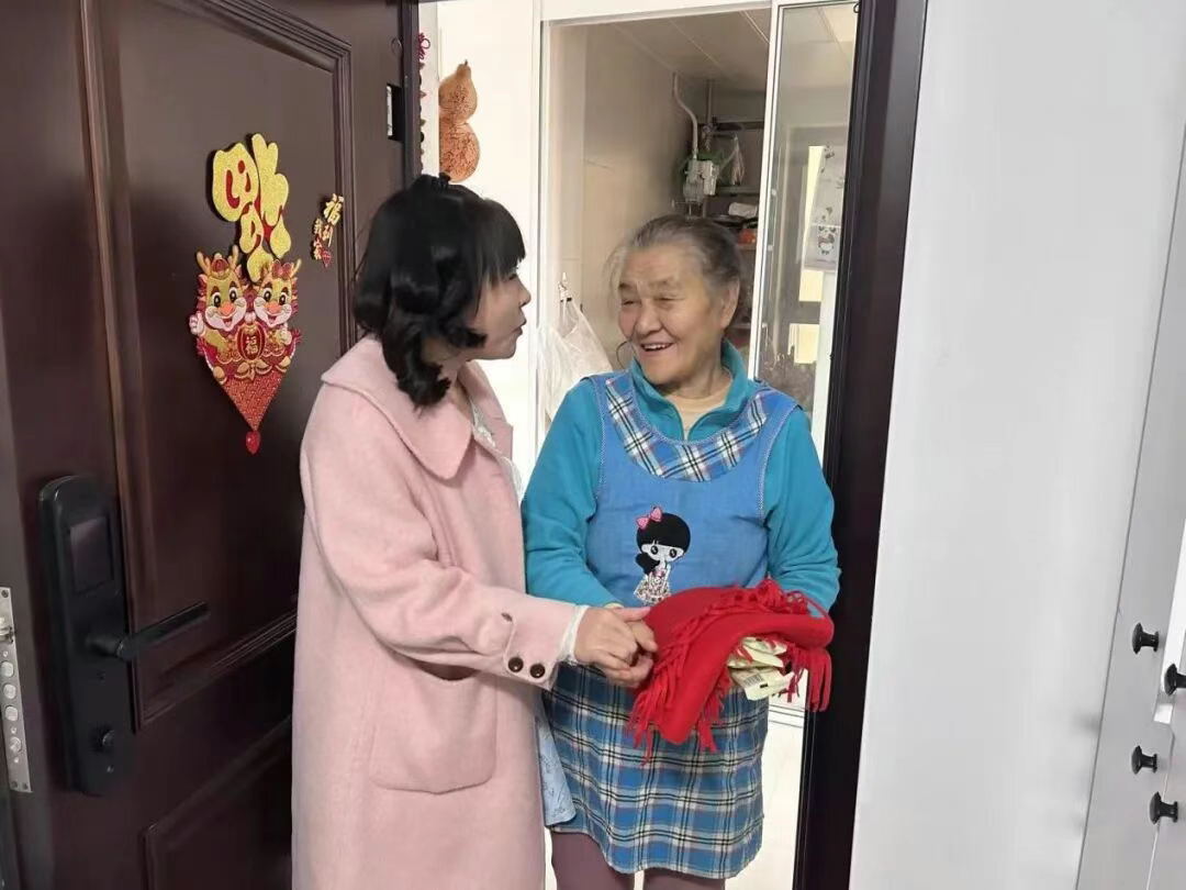 走访过程中,社区工作人员与党员志愿者带着精心准备的慰问品,到高龄老人家中,询问他们的身体健康状况和日常生活情况,聆听他们的需求,叮嘱他们保重身体,注意居家安全,并送上围巾、挂面等物品。