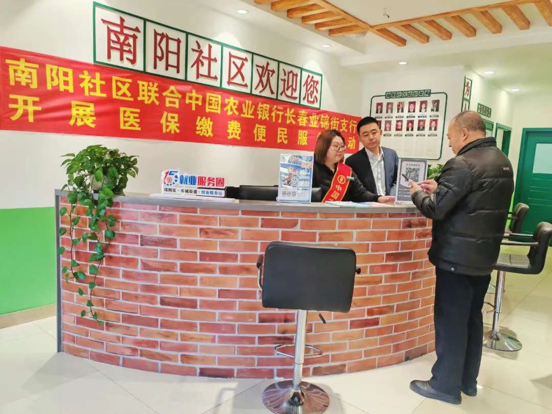 近日,春城街道南阳社区联动中国农业银行业锦街支行开展“医保服务进社区”专项便民活动,为辖区老年人提供贴心、便捷的医保缴费指导服务。