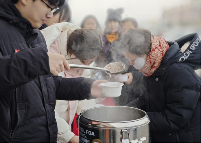 同心街道湖境社区携手中海同心湖境物业管理处,举办“浓情腊八·暖‘新’惠民”主题活动,将腊八粥送到居民手中,传递冬日温情与社区关怀。