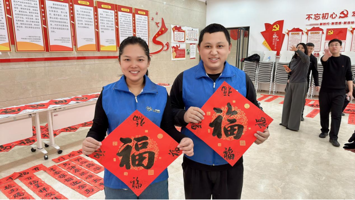 近日,林园街道林园社区举办“暖心聚力,爱满吉林”主题公益活动,邀请本地书法家现场挥毫,为一线奔波的“城市摆渡人”书写春联、赠送福字,送上新春祝福。