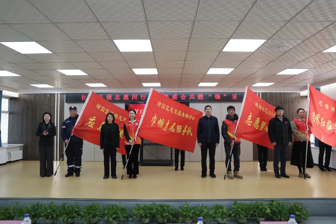 张宝表示,在场的国家级先进典型,是雷锋精神的生动体现者,全区志愿者要以他们为标杆,学习他们几十年如一日的坚守与奉献精神。同时指出,当前正值迎接2027长春大冬会的关键时期,全区志愿服务力量要以此次学雷锋活动为契机,提前进入“长春大冬会时间”,苦练专业技能,向世界展示绿园温度、长春风采。现场举行了志愿服务队授旗仪式,来自不同领域的多支代表性队伍接过旗帜,象征着责任与使命的传递。全体志愿者集体庄严宣誓,表达了弘扬雷锋精神、服务奉献社会的坚定决心。