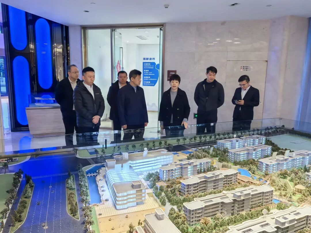 在吴中集团参观企业展示馆,代表团考察城市更新项目蓝芳华园、高端康养项目瑞颐椿熙里,学习城市品质提升、康养产业发展等方面的先进经验与成熟模式,就与吴中集团未来合作方向进行深入交流。
