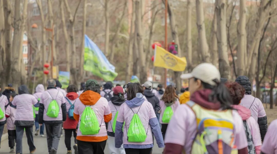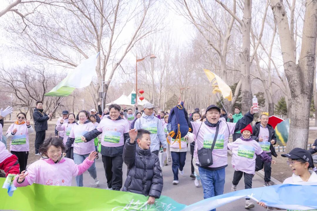 活动现场彩旗飘扬、人声鼎沸,参与者们身着统一服装,精神抖擞、意气风发。随着发令枪响,徒步队伍从起点有序出发,沿着长春公园健康步道一路前行,在移步换景中尽显运动与生态之美。