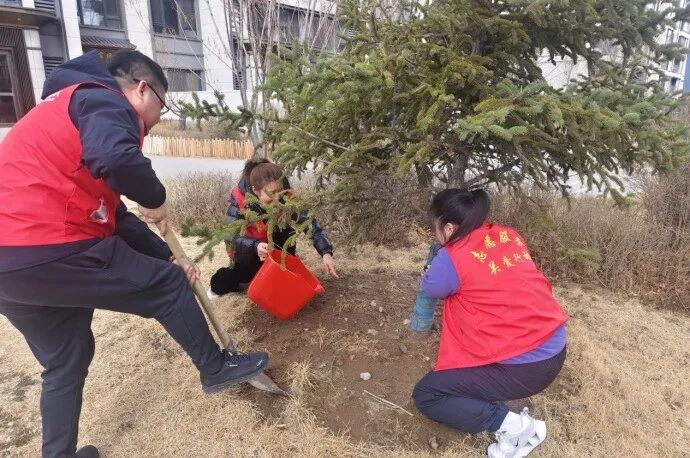 近日,同心街道湖境社区开展春季绿化造林、垃圾分类宣传志愿服务活动,以实际行动为社区添绿,传播环保正能量。